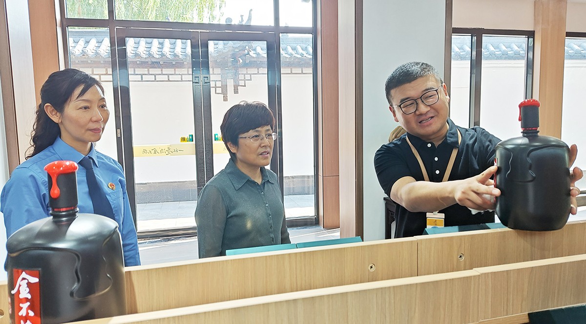 劉繼英一行在金不換集團黨委書記、總裁支濤的陪同下,實地查看了金不換白酒儲藏、銷售、生產、文化展示基地。聽取企業(yè)生產經營情況和發(fā)展規(guī)劃介紹。劉繼英檢察長對金不換多年來堅持守法誠信經營,創(chuàng)造良好生產經營環(huán)境,取得高質量發(fā)展給予高度贊揚。